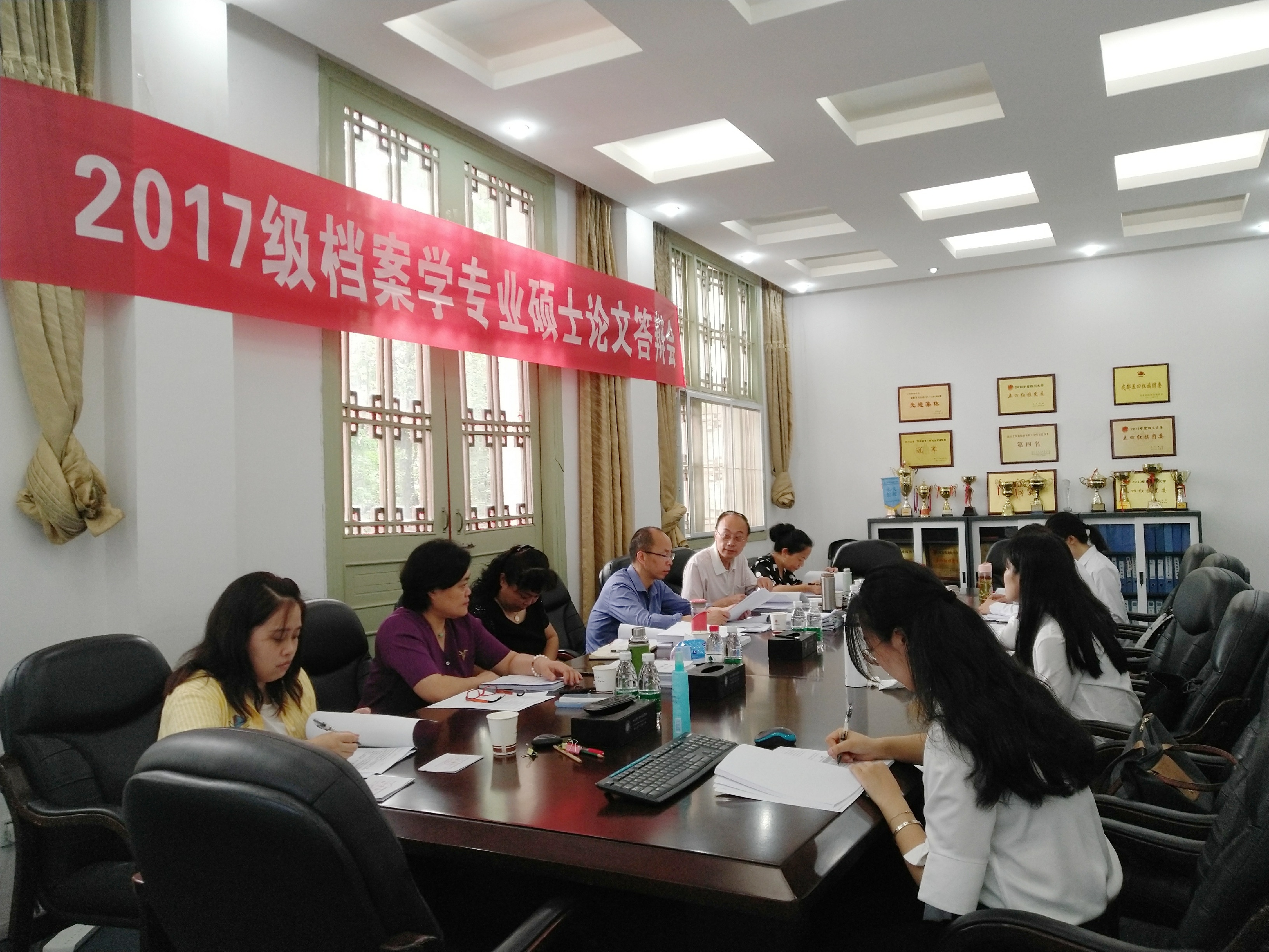 2020年5月22日9时至18时,四川大学公共管理学院档案学专业2020届硕士学位论文答辩会在公共管理学院220会议室成功举行。电子科技大学档案馆饶永馆长应邀担任答辩主席,主持了本次答辩会。四川省社会科学院副院长姚乐野教授、四川大学公共管理学院档案学专业乔健教授、陈丽教授、史江教授、何玲副教授、王萍副教授、蔡娜副教授出席并担任答辩委员会专家,档案学专业2016级本科生马晓玥担任答辩秘书,2017级档案学专业9名硕士研究生依次进行了毕业论文答辩。