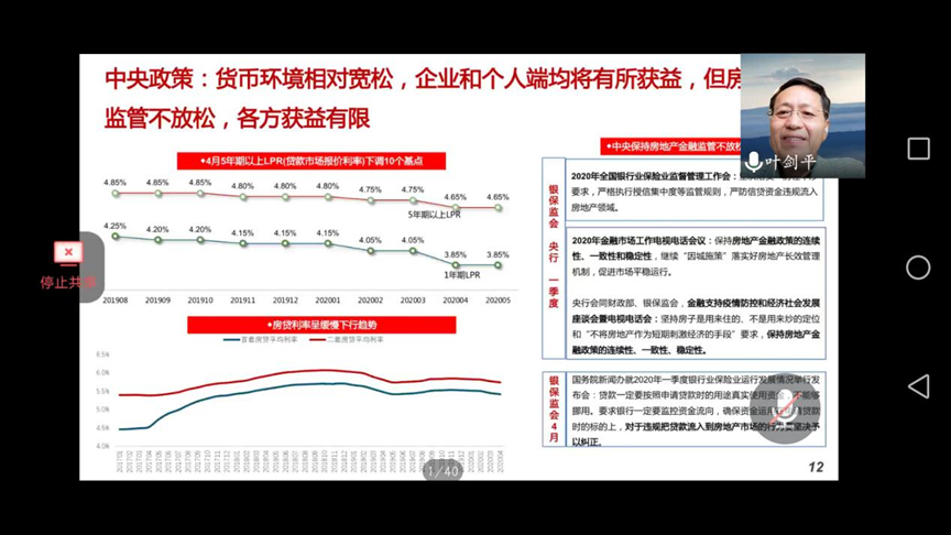 本次讲座共分为三大版块内容。在第一部分内容中,叶剑平教授分析了疫情冲击下楼市现状与趋势,指出疫情发展与购房需求呈反向变化,目前对市场冲击已接近尾声,市场销售积极恢复,但短期市场趋势为全年销售规模下降。在第二部分内容中,叶剑平教授讲解了后疫情时代城市房地产发展格局,认为疫情对房地产消费的直接冲击较短暂,并指出未来三大城市群内的核心城市及受辐射城市仍或是房地产开发和交易的热点区域。在第三部分内容中,叶剑平教授提出了疫情后地产行业升级趋势及政策建议:产品方面,可以在住宅绿色安全、住宅智能化、大户型改善型户型、物业和社区服务等方面下功夫;政策方面,需适度进行需求侧政策优化,因城施策提信心、稳预期。