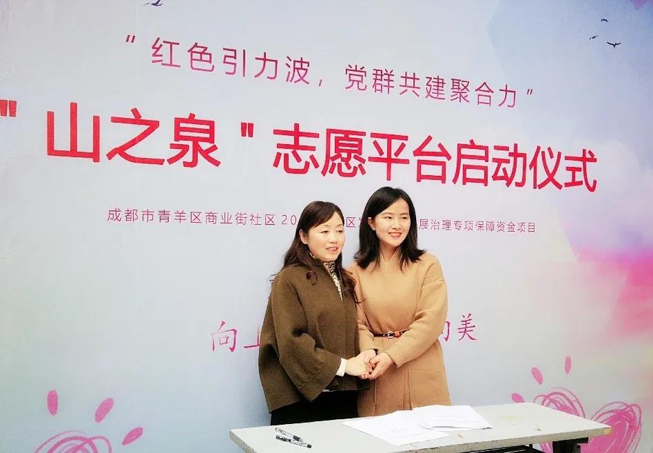 为进一步弘扬“奉献、友爱、团结、互助”的大学生志愿服务精神,为学院学生提供社会实践平台,助力社区营造温暖家园,我院与成都市青羊区商业街社区协商共建志愿服务社会实践基地。11月11日上午9:30,学院团委书记青杨媚与学生会主席强甜同学、研究生会主席田茜同学、“朝阳”青年志愿者服务队李佳淇同学、黄楷同学受邀前往成都市青羊区商业街社区参加志愿平台启动仪式暨志愿服务社会实践基地签约仪式。