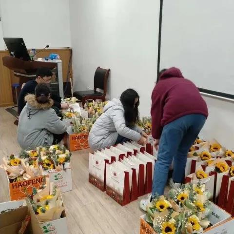 正如现场为每位考研学子准备的暖心包那样:一份防疫物资,叮嘱学生们做好防护;一份向日葵鲜花束,祝愿学子在考试中“一举夺‘葵’”。