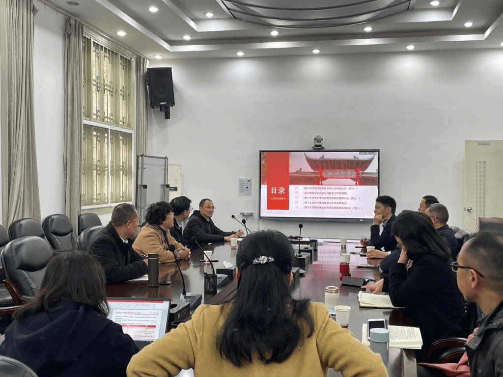 郑炳伦老师就《四川大学优秀研究生学位论文评选办法》、《加强学位论文公开工作》、《四川大学博士学位论文质量监督管理办法》(修订版)做了详细说明和介绍。他强调严守学术诚信底线,严格把关学位论文质量,导师是第一责任人。各培养单位要将博士论文质量的严格审核落实,落细,落到招生、培养、授位等各个环节。