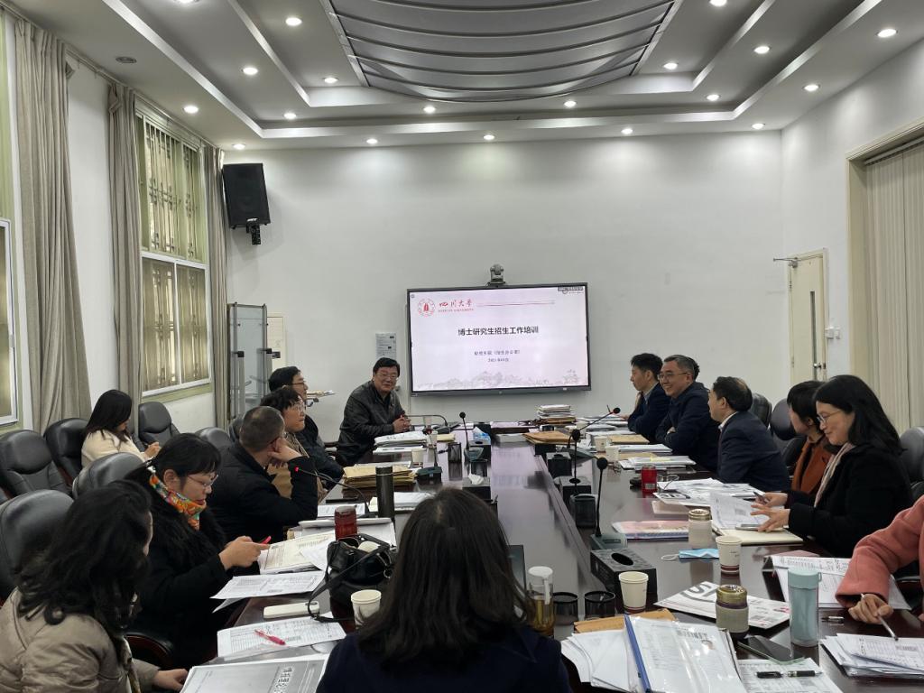 为全面落实全国教育大会及全国研究生教育会议精神,认真学习和贯彻《四川大学研究生教育深化改革与创新发展》系列文件,加强博士论文质量管理,了解招生指标政策,2021年3月8日我院博士点举行了新学期博士生导师集中培训和学习。学院特别邀请了研究生院招办刘猛主任,学位办郑炳伦科长对各项政策做了全面宣讲和解读。会议由公共管理学院党委书记姜晓萍教授主持,副校长姚乐野教授、院长史云贵教授,副院长夏志强教授和所有博导参加了此次培训。