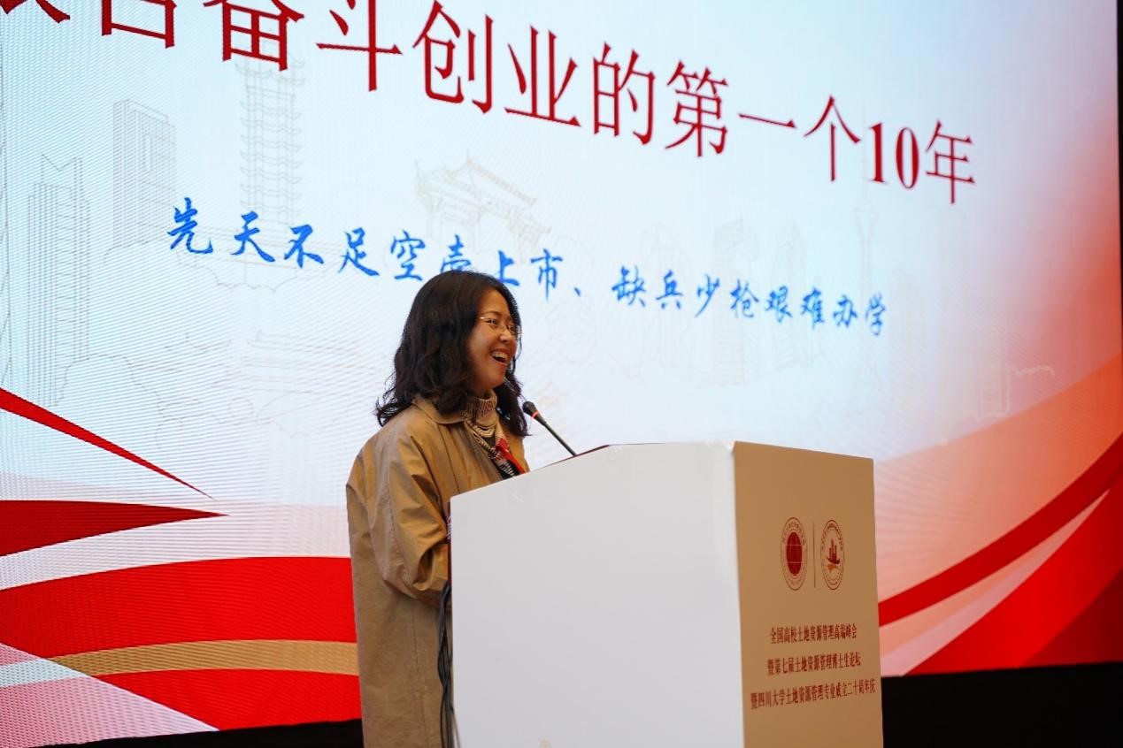 最后,本论坛由郑曦学姐做结束语。青山不改,绿水长流,希望四川大学土地资源管理的专业的学子们在“土含国运,管奉民生”的系训下,以四川大学土地资源管理专业为起点,踏遍每一寸山河故土,不坠年少青云之志。更希望四川大学土地资源管理系不仅缅怀过去,更要立足现在,着眼未来,能够培养出更多的优秀学子,建设更有实力的专业品牌。至此,“全国高校土地资源管理高端峰会暨第七届土地资源管理博士生论坛暨四川大学土地资源专业成立二十周年庆”之校友论坛的举行圆满成功。