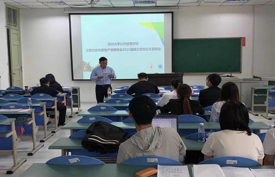 2021年5月7日下午,土地资源与房地产管理系2018级硕士研究生学位论文答辩会在公共管理学院206教室举行。四川师范大学任平教授应邀作为答辩主席,主持了本次答辩会,答辩委员会成员包括四川省社科院廖祖君研究员,四川大学公共管理学院土地资源与房地产管理系刘润秋教授、朱红波教授、杨智恒副教授、马爱慧副教授。土地行政与房地产管理专业2018级硕士研究生均参加了此次答辩会,其他年级研究生在现场旁听。