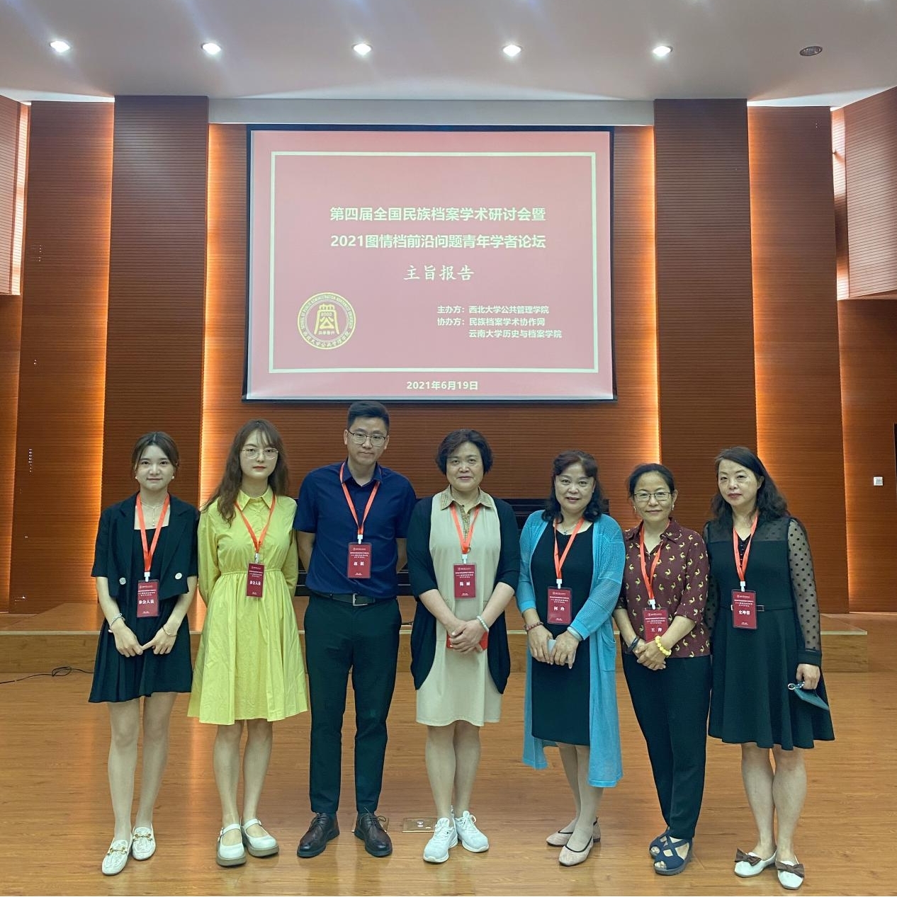 2021年6月19日,第四届全国民族档案学术研讨会暨2021图情档前沿问题青年学者论坛在西北大学公共管理学院隆重召开。秘书档案学系陈丽教授、王萍教授、何玲副教授、赵跃副研究员、信息资源管理系史坤蓉老师及学生李玉灵、吴晓梅应邀赴古都西安参会。