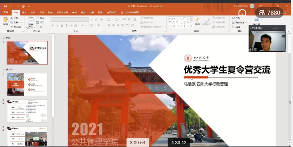 7月8日上午10点,四川大学公共管理学院2021年优秀大学生暑期云夏令营系列讲座暨优秀学生交流会顺利举行。