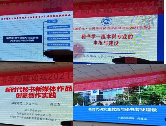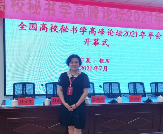 2021年7月19到22日,公共管理学院秘书档案学系陈丽教授应邀参加了在银川市召开的全国高校秘书学高峰论坛年会。来自四川大学、上海大学、上海外国语大学、苏州大学、河南大学、哈尔滨师范大学、广西师范大学等学校的秘书学档案学专家学者以及一部分开设秘书学专业课程的高校专业教师参加了会议。年会上大家对秘书学档案学相关课程建设,秘书专业课程思政教学方案及教学计划、秘书学档案学实训及实验室建设、秘书学档案学教材建设、秘书学档案学等相关专业评估及一流专业建设和申报等相关问题进行了广泛讨论和交流。
