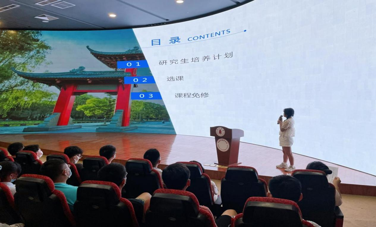 最后,研究生教务办公室的吴丹老师为同学们进行了选课说明,吴丹老师主要从研究生培养方案的维护、具体选课要求、免修课程说明这三个方面来介绍,让新生们对自己未来的研究生学习生涯又有了更深入的了解。