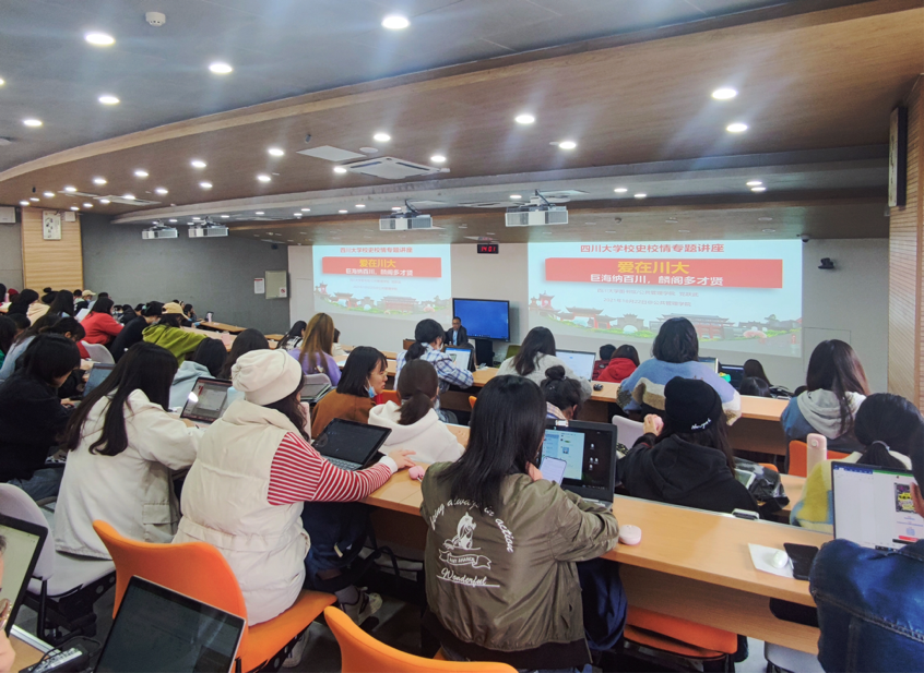 党老师结合四川大学校史与校情,展现了一代代川大人艰苦奋斗、改革创新与薪火相传的特质,诠释了“爱在川大”的丰富意涵、历史特征与时代价值。通过党老师的讲解,同学们了解到了四川大学自建校以来的发展成长史,在历史纵深中体悟到了川大精神文化,并意识到传承优秀校史文化的重要性与自己的时代担当。活动结束后,同学们纷纷表示获益匪浅。
