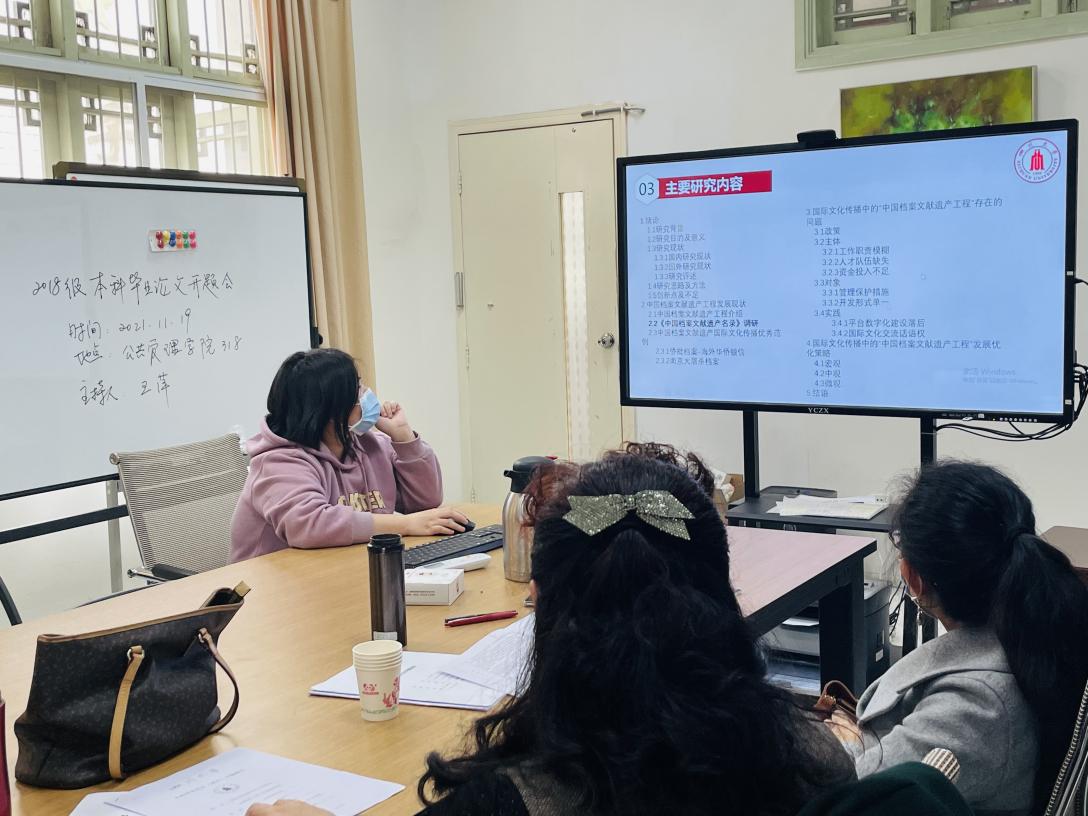 为贯彻落实学校“以人为本、崇尚学术、追求卓越”的办学理念,进一步提高本科生的培养质量,2021年11月19日14:30,我院档案学专业2018级本科生毕业论文开题报告会于公共管理学院楼成功举办。秘书档案学系王萍、史江、陈丽、何玲、蔡娜、赵跃、王阿陶老师出席并担任开题报告会的评委老师,7位老师分为三个专家评审小组分别在学院318、206、210以及通过腾讯会议对学生的毕业论文选题进行了论证与审核。