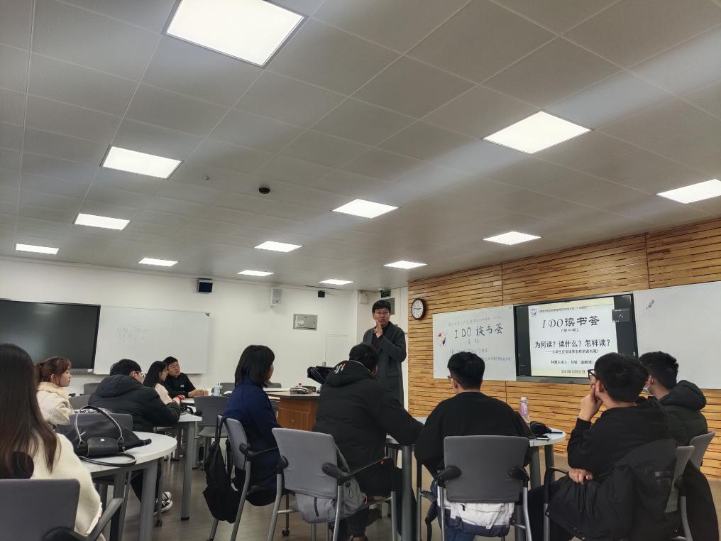 阅读是一种习惯,更是一场自我修行,如何培养良好的阅读习惯,如何通过阅读遇到更好的自己?这是大学生应该有意识去型塑的一种思维模式和实践能力。为了给学生打造一个自由读书交流的线下平台,公共管理2020级本科成立了“I DO读书荟”,经过前期的一系列酝酿、预热和组织,第一期“IDO读书荟”最终以“为何读?读什么?怎么读?——大学生应该有怎样的读书观”为主题,邀请了公共管理学院副教授刘锐老师作为特邀嘉宾老师为同学们开讲。