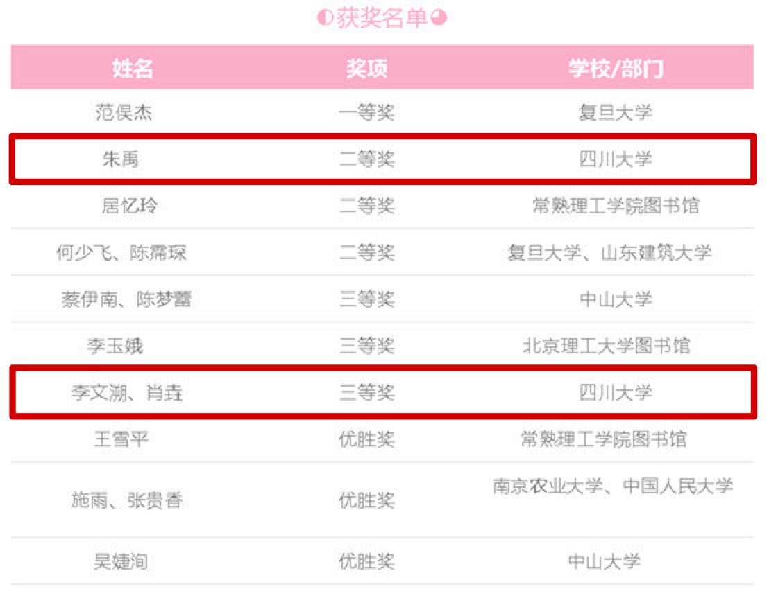 2021年12月20日,评审专家组经过十余天辛勤付出,完成了对所有参赛作品的打分,评选出了10篇优秀获奖作品。我院信息资源管理专业2019级朱禹同学获二等奖,李文溯、肖垚同学获三等奖,体现出川大信管学子优良的专业技能。