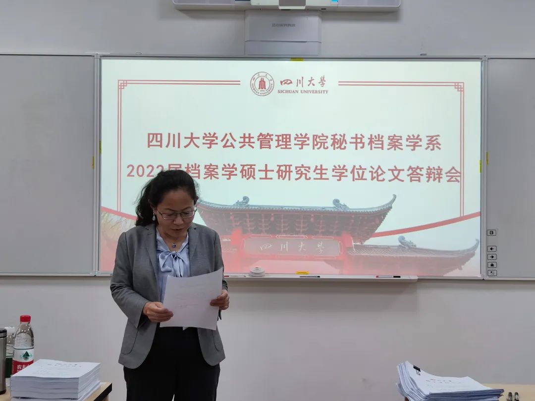5月20日,四川大学公共管理学院秘书档案学系档案学专业2022届硕士研究生学位论文答辩会在公共管理学院220会议室、105报告厅顺利举行。