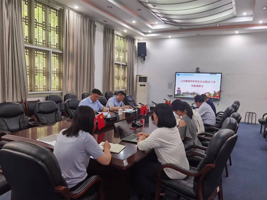 6月21日下午,校党委副书记郭勇、学工部部长刘晓虎莅临我院开展学生安全稳定工作专题调研,我院党委书记韩杰、副书记兼纪委书记罗亚玲和全体辅导员参加此次座谈会。
