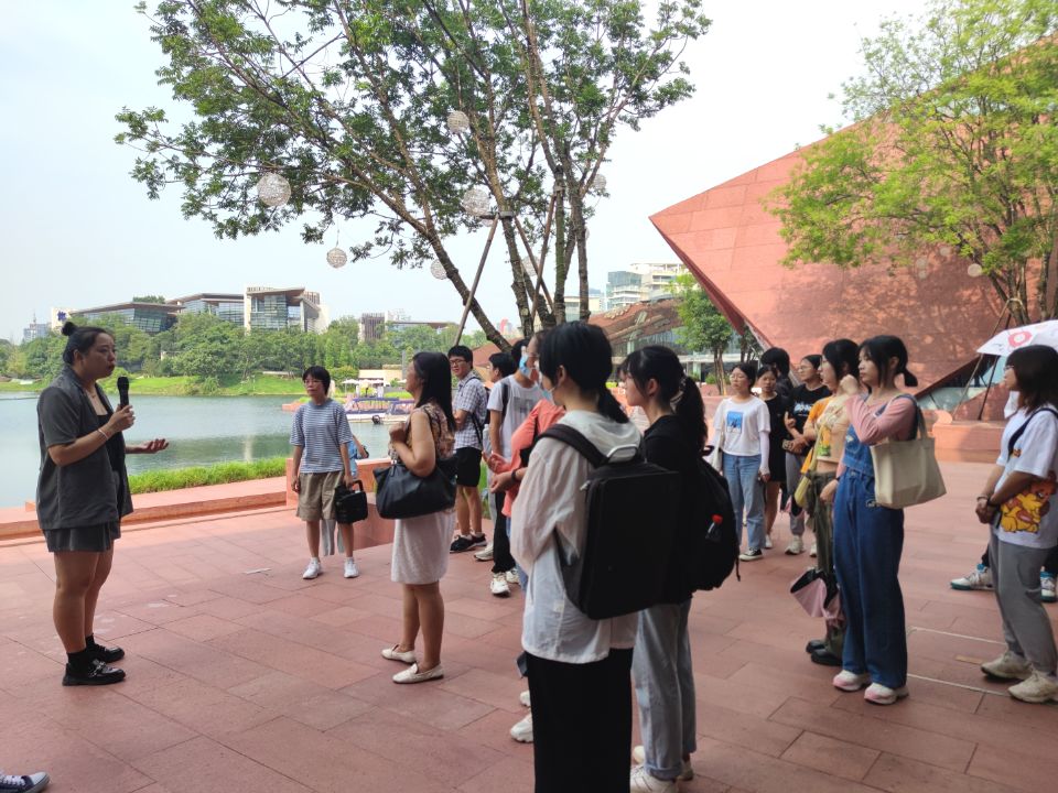 基金会秘书处工作人员李倩茹带领同学们参观麓湖艺展中心