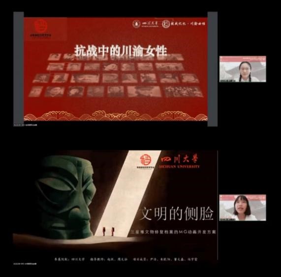 中国人民大学、武汉大学、中山大学、山东大学、吉林大学、西北大学、辽宁大学、安徽大学、苏州大学、郑州航空工业管理学院、天津师范大学、湘潭大学、四川大学等院校的15个团队在本次汇报会上展示汇报了优秀作品,教育部档案学教指委主任委员、副主任委员、秘书长、部分省级综合档案馆馆长、四川省党史研究室副主任及业界领导与专家对参展作品进行了精彩点评。本届优秀作品选题丰富、立意创新、专业性强、形式多样,展现出了新时代档案学专业大学生的档案工匠精神与勇于创新精神,我院秘书档案学系两组师生团队成功入围最终作品展。同学们的现场展示精彩纷呈,得到了点评专家的高度评价,充分展现了我院学子的风采。