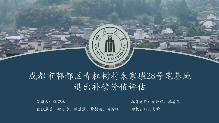 在刘润秋与廖喜生老师的指导之下,由我院土管系2019级本科生鲍敏纳、董仟禧等同学组成的队伍凭借《成都市望江楼公园公共服务价值评估》估价报告,荣获“二等奖”。此外,由我院土管系2019级本科生魏若冰、廖慧慧、曹懿璇、蒋忻玲组成的队伍,以《成都市郫都区青杠树村朱家墩28号宅基地退出补偿价值评估》估价报告,荣获“三等奖”。