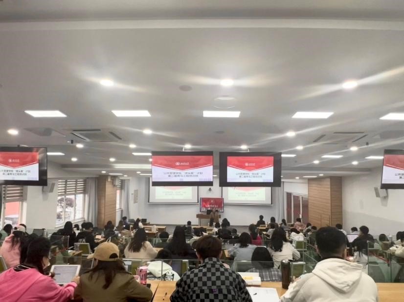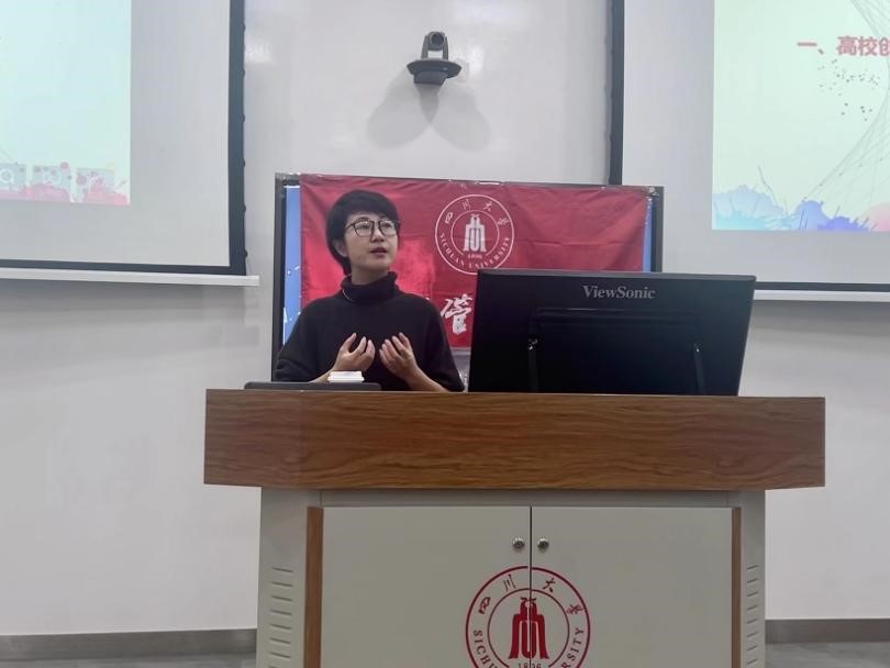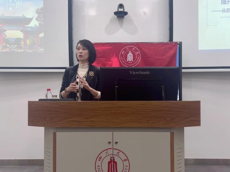 接着,国际交流与合作处副处长蒲诗璐以《提升视野,全面发展——从四川大学走向全球高等学府》为题,向同学们就出国深造进行专题授课,课程由我院专职辅导员刘碧主持。蒲诗璐老师从科学发展的视角引导同学们逐步开启大学生活中的每一步,依次从毕业生的路径选择(what)、出国深造的必要性与可行性(why)、如何从川大走向全球高等学府(how)三个维度,帮助同学们拓展发展视野、提升全球胜任力,探索符合自己的发展路径。