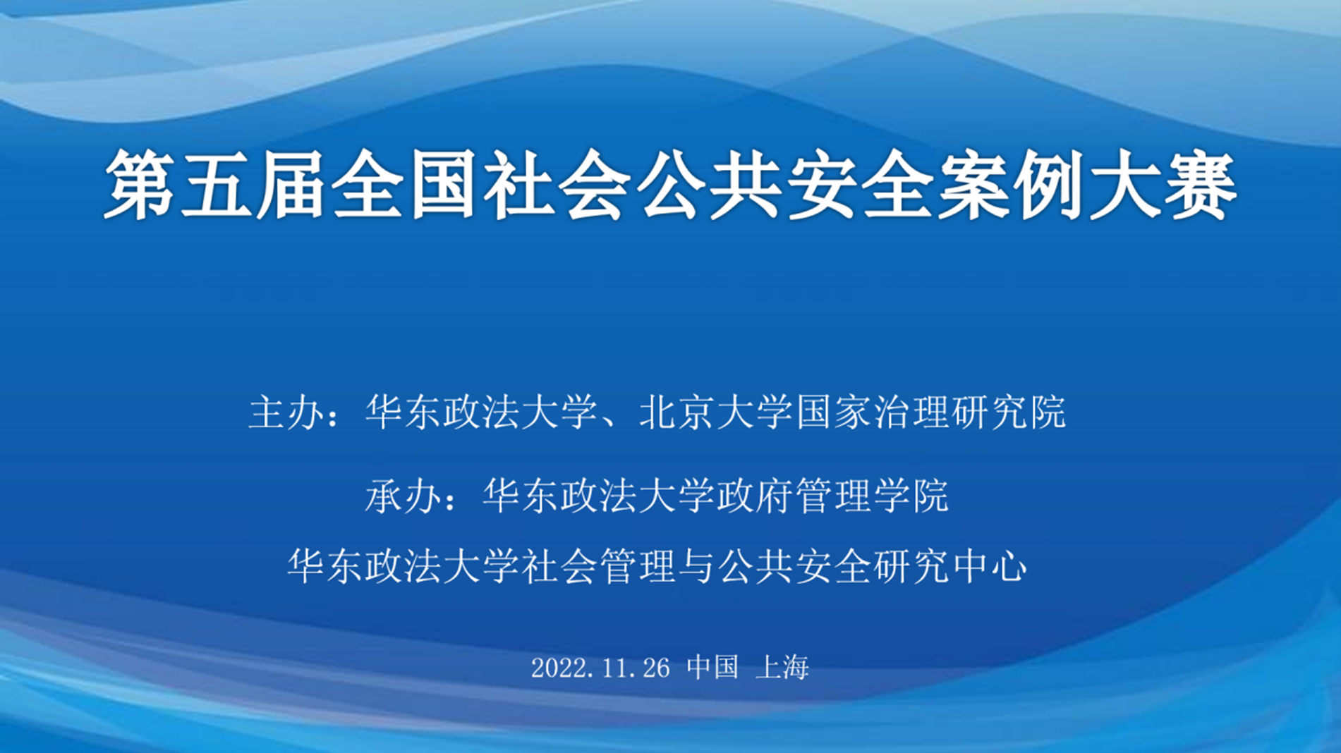 2022年11月26日上午,由华东政法大学、北京大学国家治理研究院主办、华东政法大学政府管理学院与华东政法大学社会管理与公共安全研究中心承办的“第五届全国社会公共安全案例大赛”决赛在云端举行,我院四支参赛队伍在决赛中发挥出色,分获大赛一等奖、二等奖和优胜奖。继前两届获得一等奖后,我院学子再次获得该项大赛最高奖。