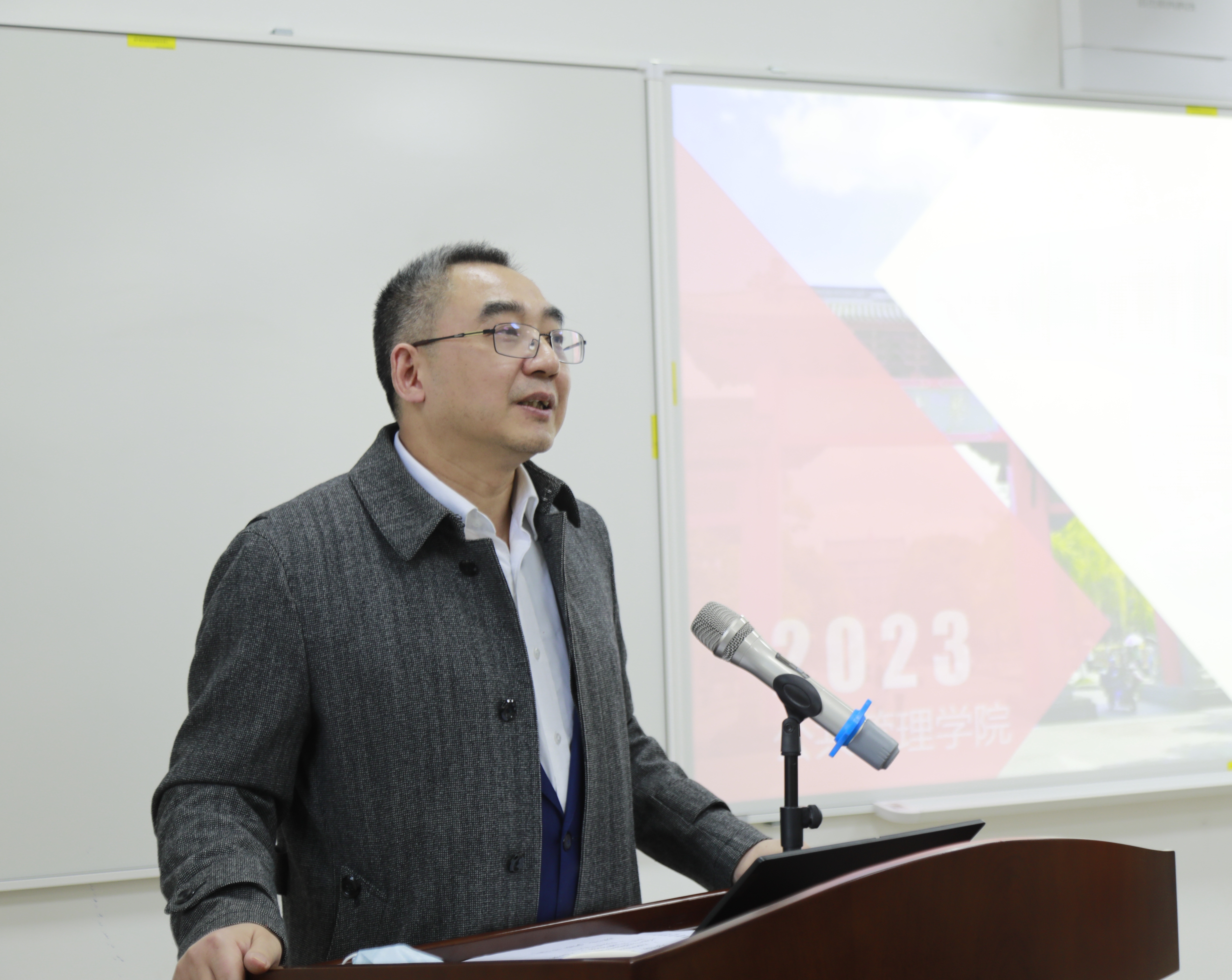 党委书记韩杰重点传达了学校新学期工作布置会和“双代会”精神。他要求要深入学习贯彻党的二十大精神,始终牢记“两个确立”、坚决做到“两个维护”,认真落实学校第九次党代会部署和学院第五次党代会部署,推进学院党建与事业发展深度融合,并围绕学校重点工作强调了学院年度有关工作。