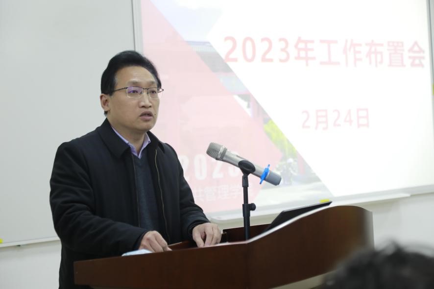 2月24日下午,公共管理学院在四川大学望江校区萃文楼博文会议室召开2023年工作布置会暨学校“双代会”精神传达会。学院领导班子和100余位教职工参加了此次会议。会议由学院党委书记韩杰主持。