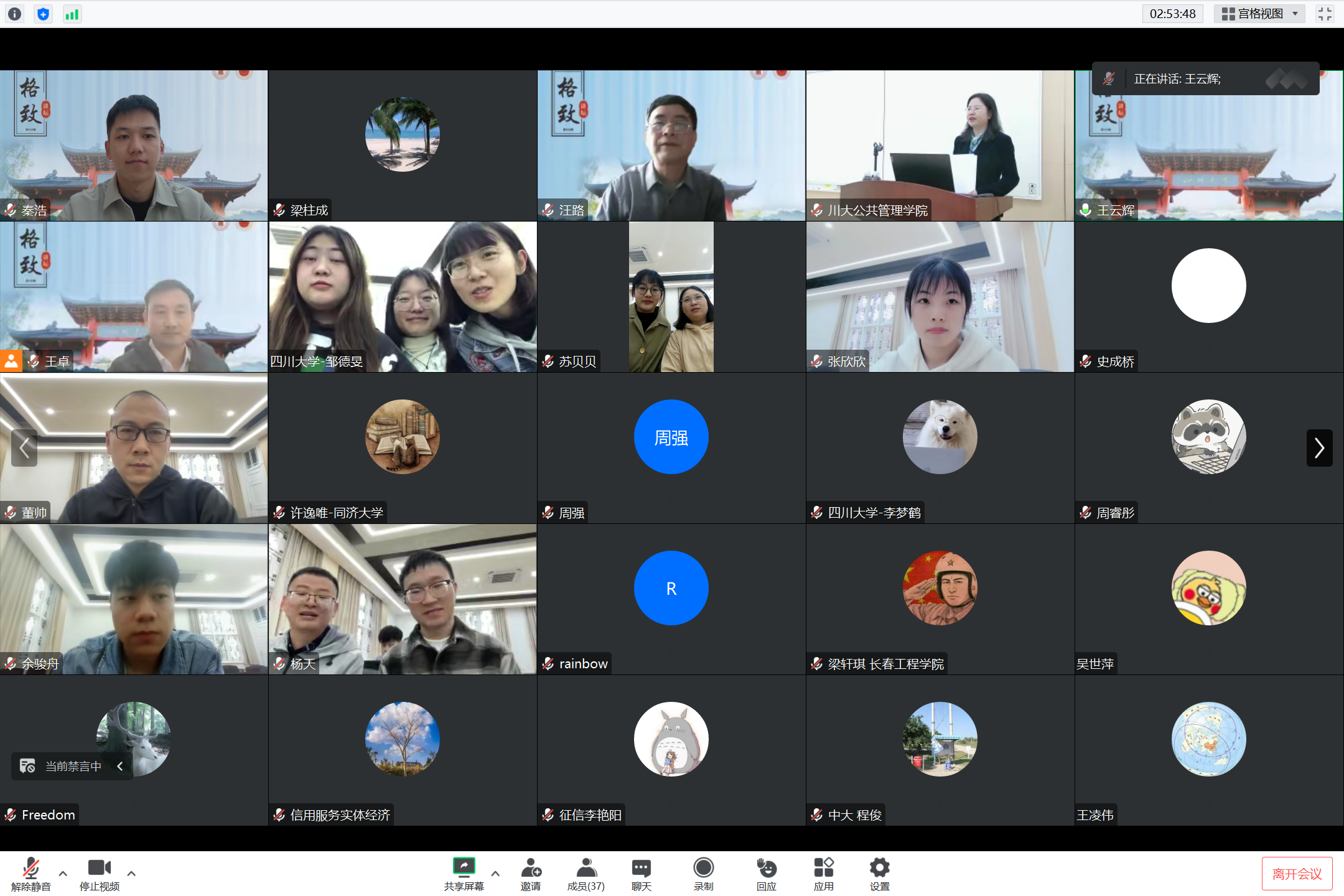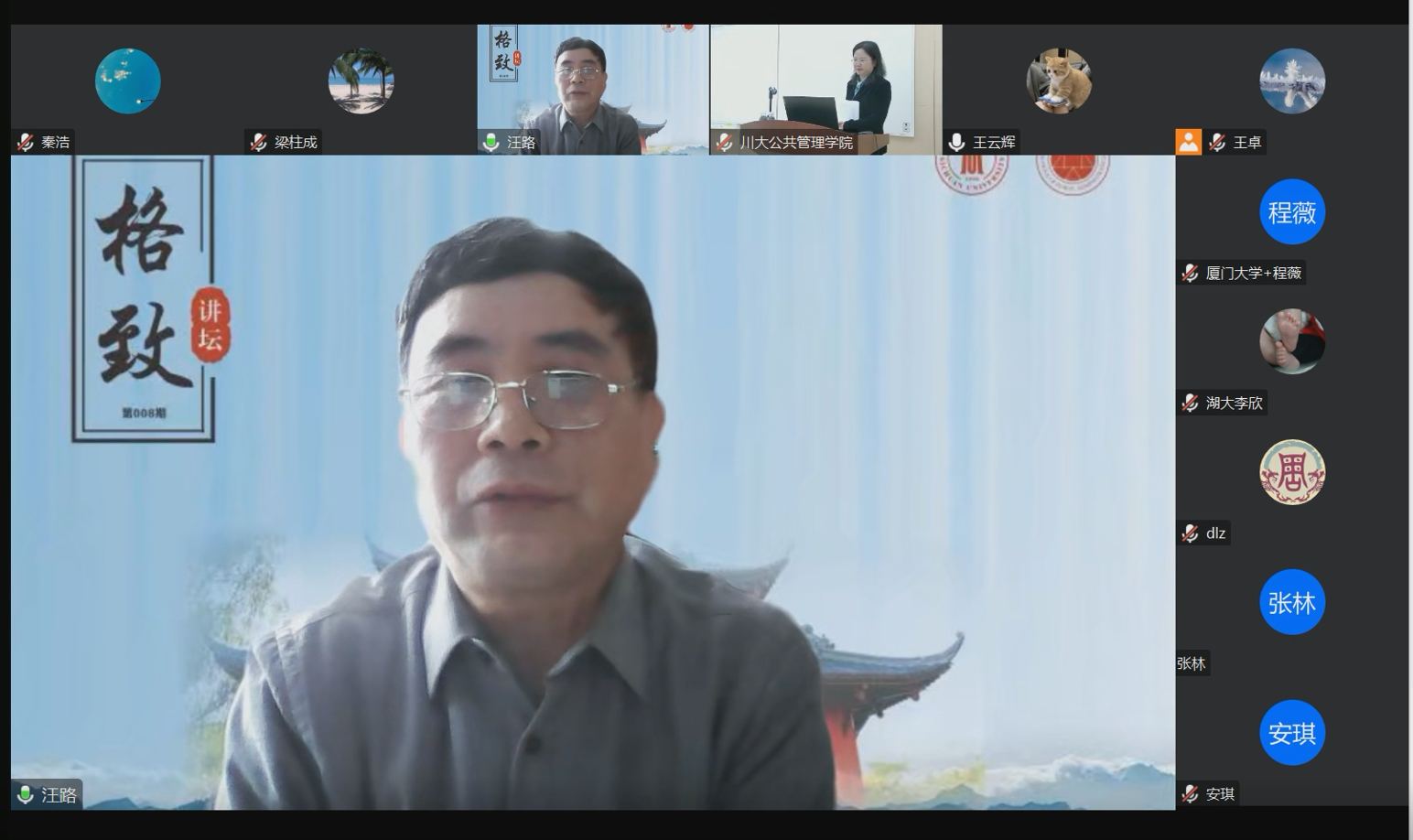 3月21日下午,中国人民银行征信中心原副主任、上海立信金融会计学院客座教授汪路应邀做客四川大学公共管理学院格致论坛,做题为“我国信用体系建设研究”的讲座。本次讲座采用线上线下结合的形式,一百余位来自本校和全国各地的师生、学者参加了本次讲座。