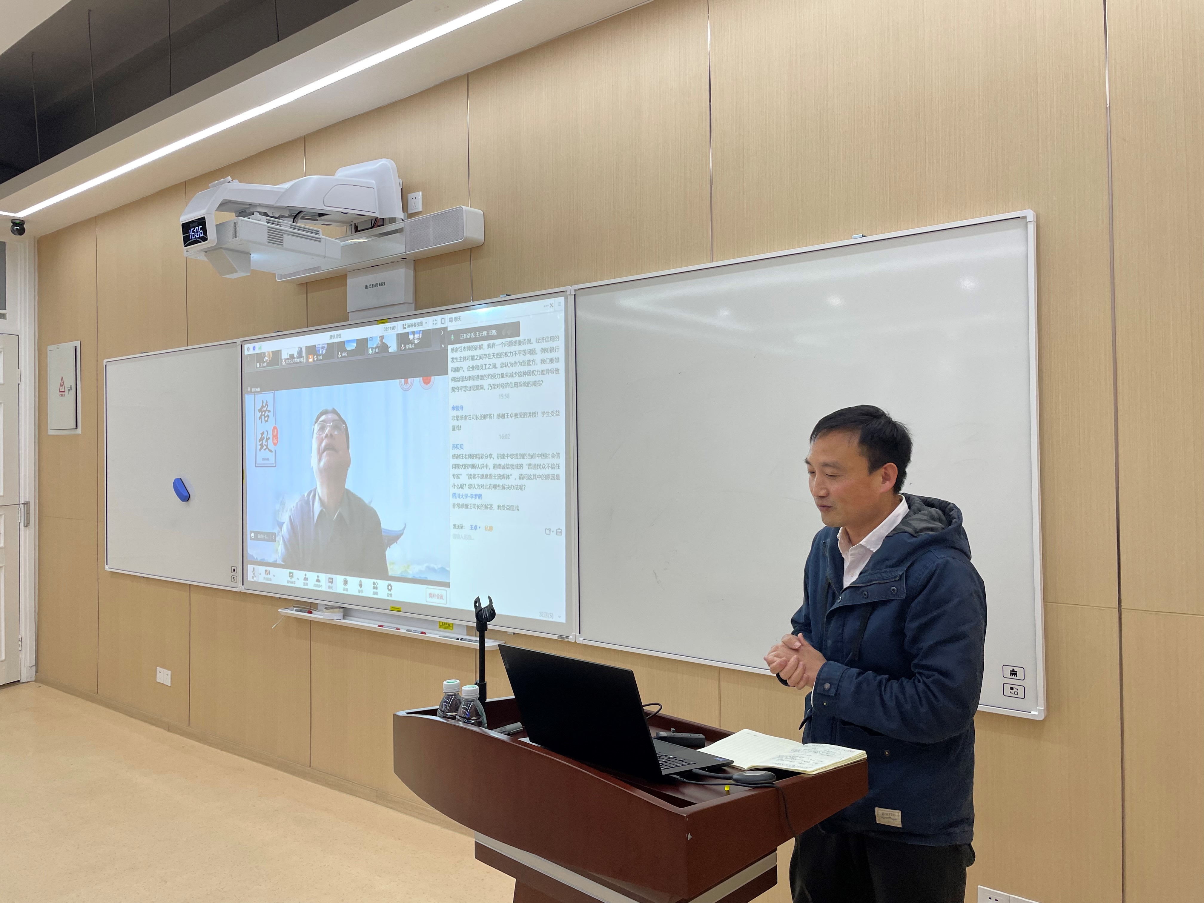 在提问环节,来自线上线下的与会学者踊跃提问,汪教授耐心解答。最后,王卓教授对本次讲座内容进行了概括和总结,并对汪路教授的精彩讲演表达了感谢。