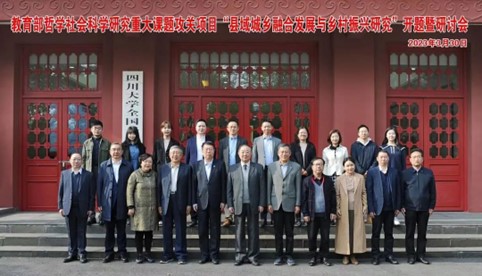 2023年3月30日上午,由四川大学公共管理学院王敬尧教授担任首席专家的教育部哲学社会科学研究重大课题攻关项目“县域城乡融合发展与乡村振兴研究”开题会在四川大学全国干部教育培训基地顺利召开。北京大学王浦劬教授、南开大学朱光磊教授、吉林大学周光辉教授、中山大学肖滨教授、中国人民大学何艳玲教授、北京大学关海庭教授,四川大学社科处处长傅其林教授、四川大学公共管理学院姜晓萍教授、四川大学公共管理学院党委书记韩杰、四川大学公共管理学院院长夏志强教授、四川大学公共管理学院范逢春教授、四川大学公共管理学院衡霞教授、四川大学公共管理学院李强彬教授、四川大学公共管理学院副院长王慧敏等知名专家学者和学院有关负责同志参加了此次会议,并围绕“县域城乡融合发展与乡村振兴研究”主题开展深入研讨。