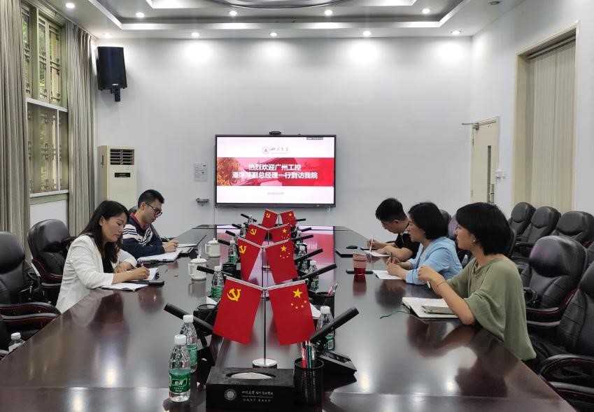 2023年4月20日,广州工业投资控股集团有限公司(下称:广州工控)人力资源部副总经理潘萍萍一行2人到访我院进行招才引智交流。学院党委副书记罗亚玲教授及就业专职老师参会交流。