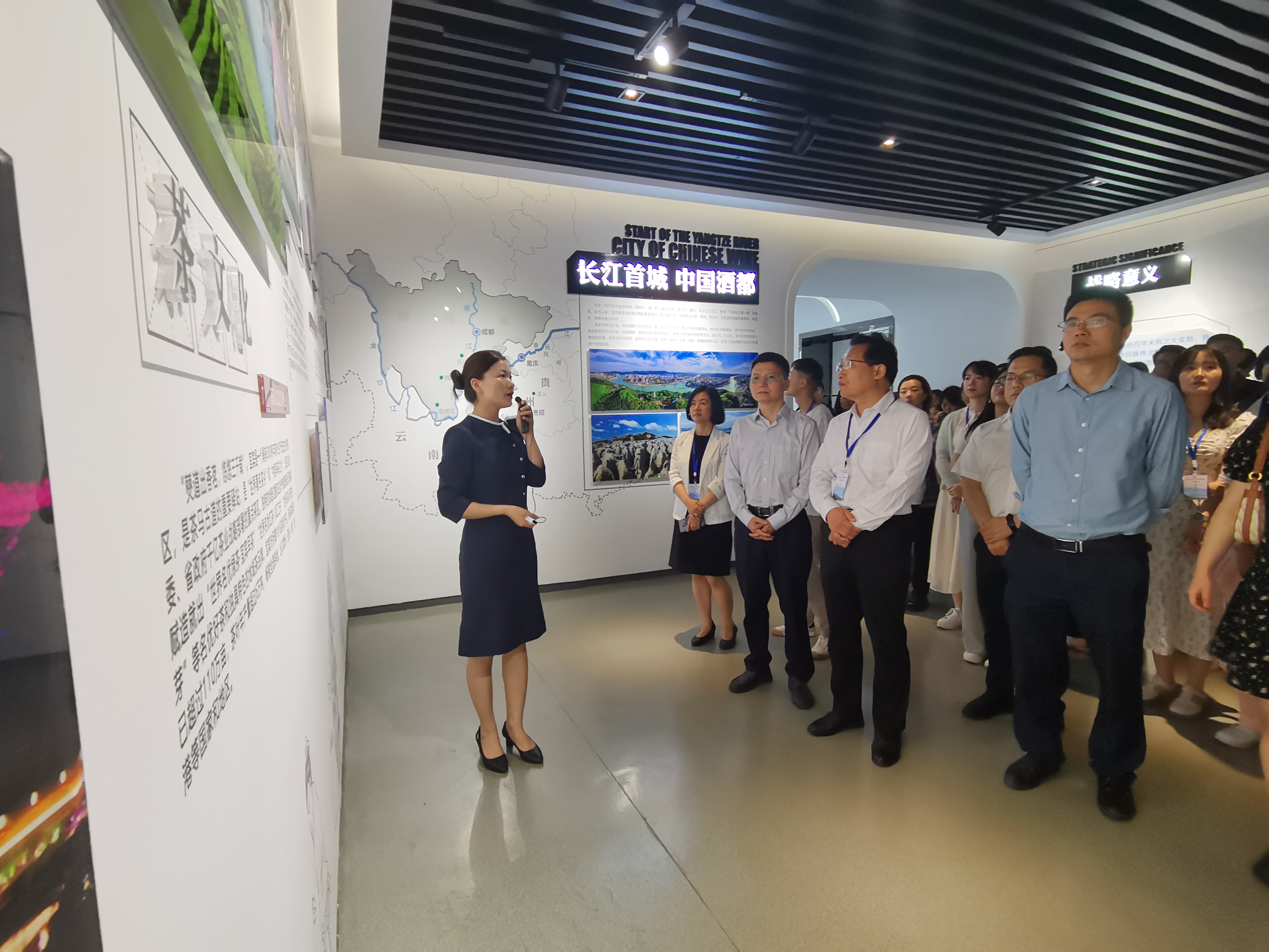 追随习近平总书记的脚步,师生们来到极米光电有限公司,参观企业宣传片和荣誉墙,体验极米光电的经典产品功能,并到沉浸式体验区和场景体验间进行参观。在四川时代新能源科技有限公司,师生们从高处鸟瞰宁德时代落户三江新区的场址。在三江新区规划展览馆,师生们了解宜宾作为“长江首城•中国酒都”的总体情况、三江新区的设立背景和交通优势,俯瞰新区沙盘,观看宣传片,参观三江新区布局的新兴产业的产品,包括新能源汽车、动力电池等。