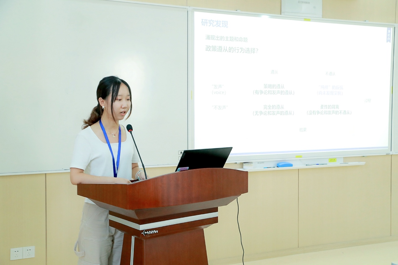 中国人民大学公共管理学院郭一帆代刘杨发表了题为《公民的遵从行为和影响因素:基于我国疫情防控的扎根研究》的报告。报告通过对我国疫情防控的扎根研究,指出公民政策遵从行为包括策略的遵从、完全的遵从、“纯粹”的反抗与柔性的背离,提出政策遵从行为的影响因素包括政策合法性感知、街头官僚的特征和行为、个体因素、社会因素。