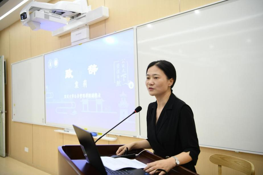 在开营仪式中,袁莉副院长首先致辞,并对各位营员的到来表示诚挚的欢迎。袁莉副院长介绍了四川大学和公共管理学院历史沿革和发展情况并总结了学院建院20多年来的辉煌成就。她希望营员们能通过亲身参营,领略四川大学严谨求实的治学风范,感受公共管理学院包容自由的学术氛围。