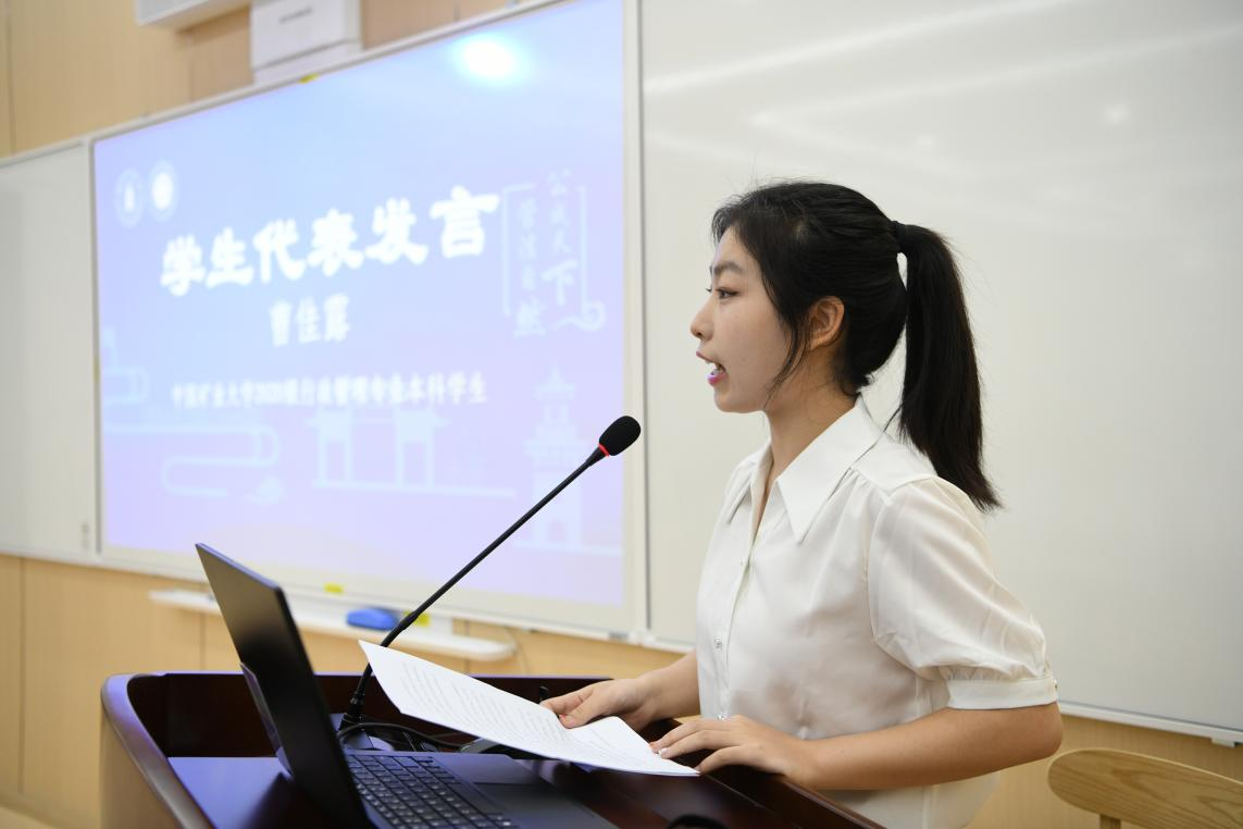 中国矿业大学的曹佳露同学作为营员代表发言。她代表营员们对学院的精心组织表示衷心的感谢,她表达自己坚定选择干部教育学作为继续深造的领域是因为坚信四川大学公共管理学院给大家提供了坚实广阔的学术平台,而四川大学全国干部教育培训基地更是学习和实践的基地,将助力于本专业同学们练就本领、全面发展。