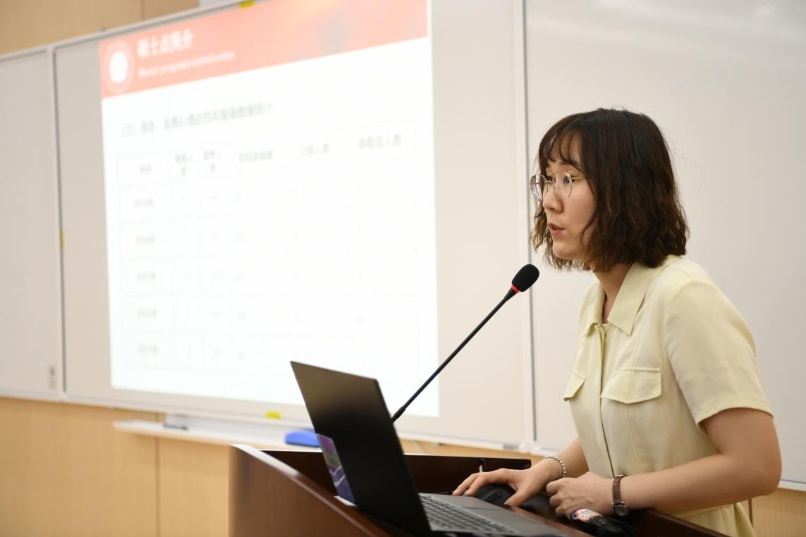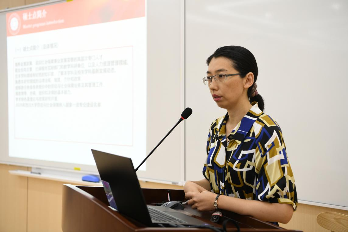 开营仪式的第二个部分是学院和学科介绍。首先,教学管理科科长李岚老师从扎实的学科建设、雄厚的师资力量、丰硕的学术成果、优秀的生源质量以及完备的奖助体系等方面对我院学科发展,专业设置以及研究生招生、培养等情况做了全面介绍。接着,社会保障专业张浩淼教授和应用心理学专业李诗颖副教授分别从学科方向、师资队伍、学生发展等方面介绍了各专业的培养特色和培养要求,鼓励同学们报考川大,圆梦川大。