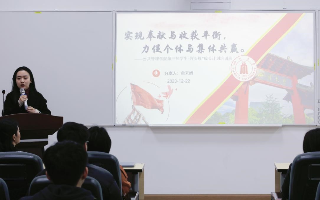 至此,本届学生“领头雁”成长计划培训班圆满收官。本次培训针对同学们的所急所需,以阵容强大的师资队伍和丰富多元的授课内容,切实鼓励学生骨干立大志、明大德、担大任,成长为学生群体的“领头雁”。