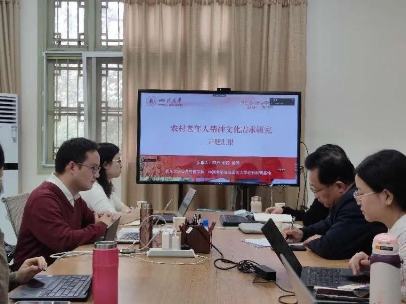 近日,中国老龄协会委托四川大学公共管理学院老龄科研基地承担的课题“农村老年人精神文化需求研究”开题会议召开,会议采取线上线下融合的方式。会议由中国老龄协会政策研究部主任孔伟主持,中国老龄协会副会长肖才伟出席并讲话。参加会议的人员还有:中国老龄协会政策研究部副主任骆开定,政策研究处副处长董彭滔、调研员甄蓉以及干部刘淼、李芳云;我院党委书记韩杰、副书记罗亚玲以及李丹教授、杨帆副教授、曹杨副教授和部分硕博士同学等。会议邀请了农工党中央研究室主任郭洪泉、重庆市委党校副校长周学馨、民政部社会福利中心党委书记甄炳亮、西南交通大学国际老龄科学研究院院长张雪永教授等进行专家咨询论证。