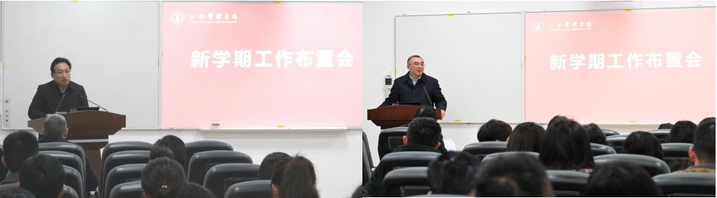 近日,公共管理学院在四川大学望江校区萃文楼博文会议室召开2024年新学期工作布置会。学院领导班子成员、党委委员、工会主席、专职组织员等100余位教职工参加了此次会议。会议由学院党委书记韩杰主持。