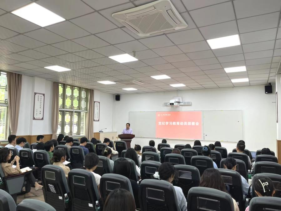 学院党委书记韩杰在讲话中传达学校党纪学习教育动员部署会精神,对学院开展党纪学习教育进行安排部署。他强调,要深入学习贯彻习近平总书记关于党纪学习教育的重要讲话和重要指示精神,深刻认识开展党纪学习教育的重要意义;要准确把握党纪学习教育的目标要求,把开展党纪学习教育与巩固拓展主题教育成果衔接起来,与贯彻落实党中央重大决策部署、落实学校第九次党代会和学校党委九届二次、三次全会精神紧密结合起来,与落实“1+5”文件、落实好学校和学院重点任务以及巡视整改结合起来,扎扎实实开展党纪学习教育;要切实学深悟透笃行,不断深化学习成效,推动《中国共产党纪律处分条例》入脑入心,引导党员干部学纪、知纪、明纪、守纪,始终做到忠诚干净担当,在推进学院高质量内涵式发展的征程中奋力开拓、勇担重任。