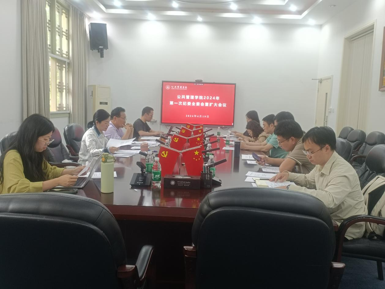 4月19日,公共管理学院在望江校区萃文楼召开2024年第一次纪委全委会暨扩大会议。学院党委书记、纪委委员、教工党支部纪检委员参加了此次会议。会议由学院党委副书记兼纪委书记罗亚玲主持。
