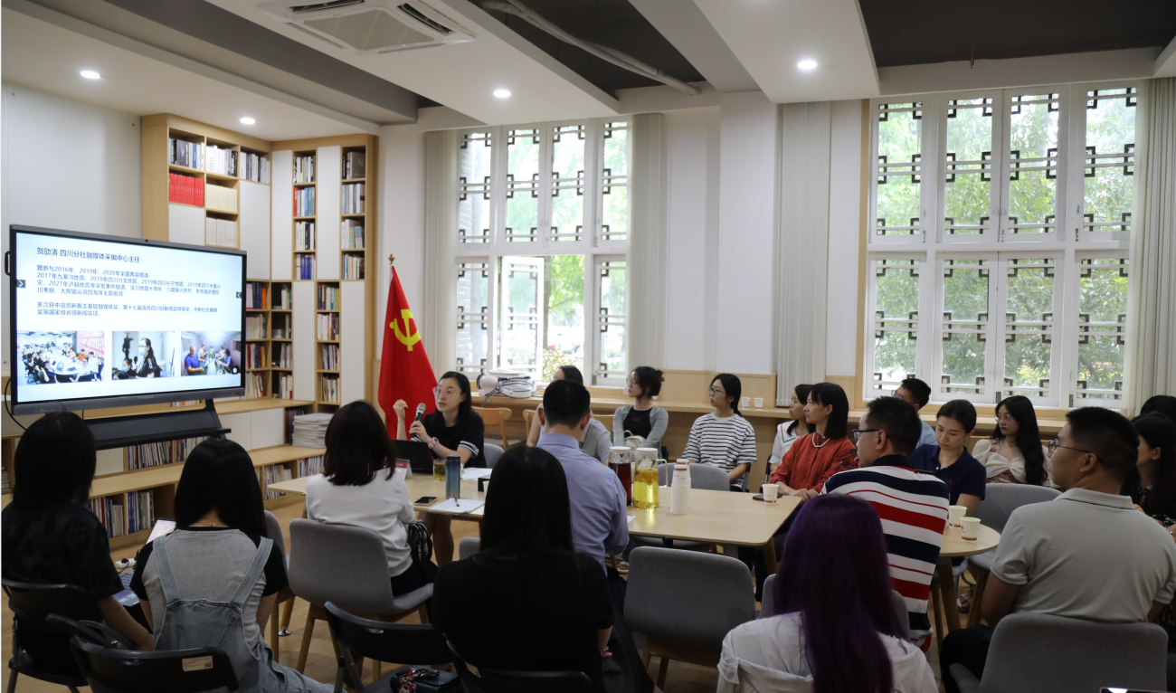 为推进学校基层单位宣传工作质量提升,校党委宣传部组织开展“言川”校园媒体沙龙系列活动。近日,由校党委宣传部主办、公共管理学院承办的第1期沙龙活动在望江校区萃文楼顺利开展。中国新闻社四川分社融媒体采编中心主任贺劭清应邀作“新闻采写技巧”专题分享。校党委宣传部副部长陈薇,商学院党委副书记李小平,海外教育学院等单位宣传工作人员,公共管理学院副院长王慧敏,公共管理学院各党支部宣传委员、教职工代表、学生代表等40余人参加了此次活动。活动由陈薇主持。
