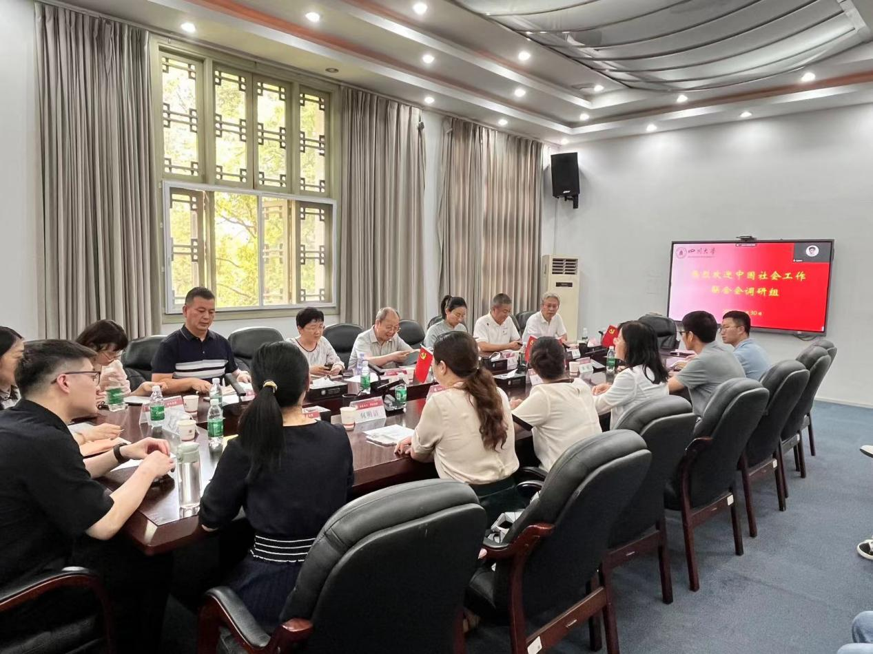 徐婷副教授向调研组一行介绍了我校社会工作专业本科、社会工作专业硕士人才培养体系,社会工作学生专业实习基地建设、本科硕士毕业生就业情况,以及四川大学社会工作专业人才培养专注于精细化、国际化、研究型等特点。王卓教授向调研组介绍了四川省社会工作人才培养单位的分布和特点,以及当前社会工作行业发展的现状与挑战。何明洁副教授就社会工作人才培养结构与培养层次与调研组进行了交流。熊征教授介绍了西华大学社会工作人才培养、学生就业等基本情况以及未来发展面临的主要问题。