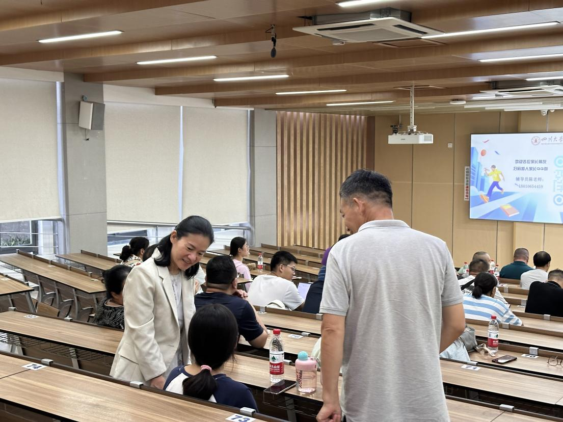 为加强家校沟通交流,促进双方有效合作,构建良好的协同育人机制,9月6日晚7点,四川大学公共管理学院在江安校区综合楼召开2024级本科新生家长见面会。公共管理学院党委书记韩杰、党委副书记罗亚玲、副院长袁莉出席了此次见面会,心理健康教育中心王瑾一受邀作主题分享。见面会由公共管理学院2024级本科辅导员陈萱源主持,200余位新生家长参与了见面会。