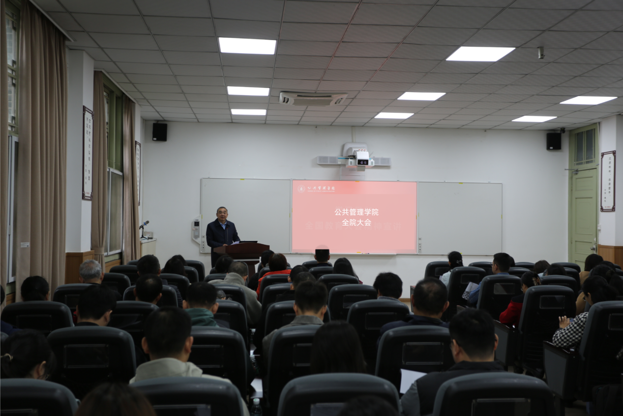 11月22日上午,公共管理学院在望江校区萃文楼博文报告厅召开2024年秋季学期政治学习暨全院大会,学院领导班子成员和全体教职工参加了此次会议。会议由学院党委副书记兼纪委书记罗亚玲主持。