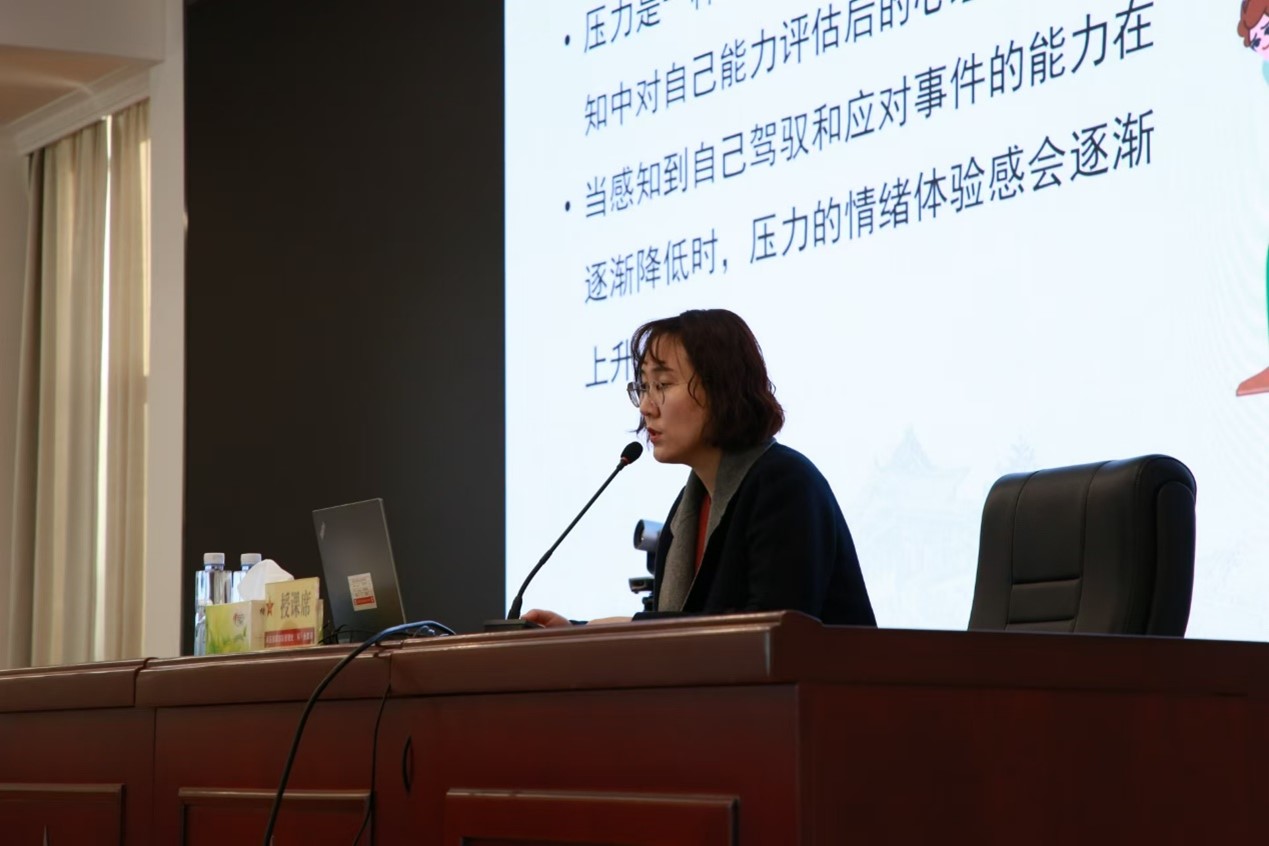 李诗颖老师进行了时长1小时的题为“压力的识别与应对”的主题讲座,讲解了认知情绪理论、压力耐受与易感人格、心理韧性等压力相关理论知识,以案例形式解释了自尊、自卑、自恋的内涵和区别,并介绍了如何用“正念”和“自我接纳”的方式来应对压力。