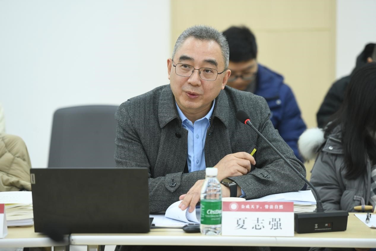 院长夏志强教授作公共管理学一级学科学位授权点自评估总结汇报,他从公共管理学学科的历史简况、硕博士的培养目标与学位标准、基本条件、人才培养、服务社会、合作交流等方面作了详细介绍,并总结存在的主要问题和持续改进计划。