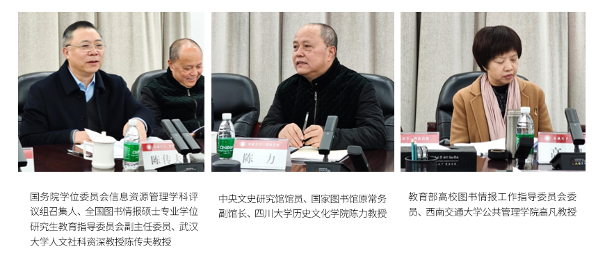 12月14日上午,四川大学图书情报专业硕士学位授权点自评估专家评审会在萃文楼311室召开。本次评审会邀请了国务院学位委员会信息资源管理学科评议组召集人、全国图书情报硕士专业学位研究生教育指导委员会副主任委员、武汉大学人文社科资深教授陈传夫教授,中央文史研究馆馆员、国家图书馆原常务副馆长、四川大学历史文化学院陈力教授,教育部高校图书情报工作指导委员会委员、西南交通大学公共管理学院高凡教授,四川省普通高等学校图书情报工作指导委员会秘书长、四川大学图书馆姜晓研究馆员,成都图书馆(成都市古籍保护中心)肖平馆长、中国科学院成都文献情报中心鄢小燕处长,四川省图书馆付玉贞副馆长等多位学界、业界专家担任评审。四川大学公共管理学院班子成员、教师代表等参会。