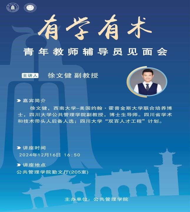 12月16日下午,公共管理学院举行了青年教师辅导员见面会。学院党委副书记罗亚玲,青年教师辅导员徐文健,教学管理科科长、博士第一党支部书记李岚,学生科科长刘碧,学生科副科长、博士第二党支部书记陈萱源,2024级研究生辅导员苟欢,120余名博士生参加了交流会。