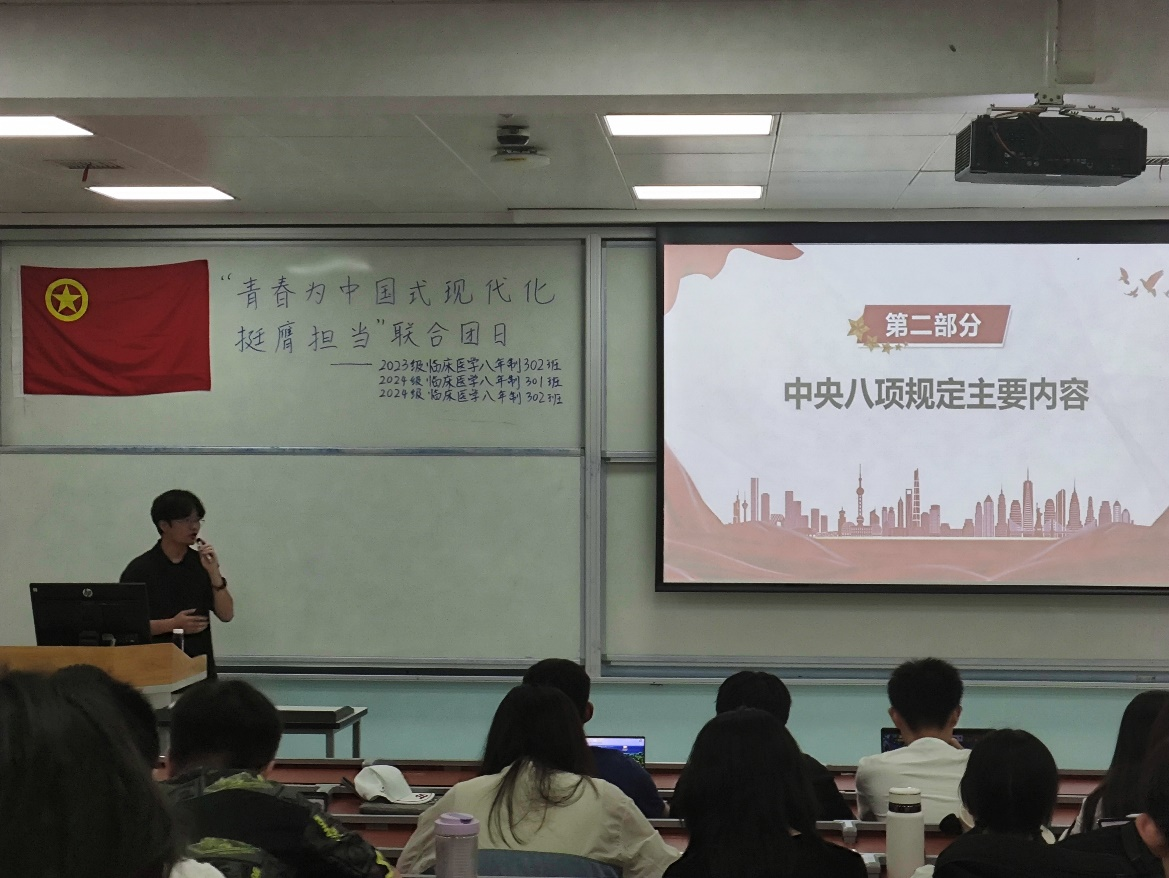 为深入学习贯彻中央八项规定精神,搭建理论学习与实践认知的贯通平台,2025年5月23日,四川大学百川青年学生宣讲团公共管理学院分团走进四川大学华西临床医学院本科团支部,开展“国家治理现代化进程中的中央八项规定解读”主题宣讲活动,宣讲团成员刘伟同志担任主讲。