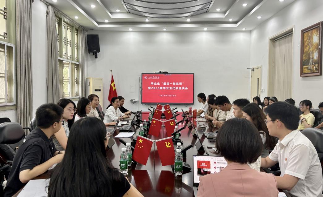 6月25日下午,公共管理学院在萃文楼311会议室举行了2025届毕业生“毕业前最后一堂党课”暨毕业生代表座谈会。学院党委书记王彬、党委副书记兼纪委书记罗亚玲、党政办刘晓燕老师、毕业年级辅导员青杨媚和付亚南、2025届毕业生党员及毕业生代表参加了此次活动。