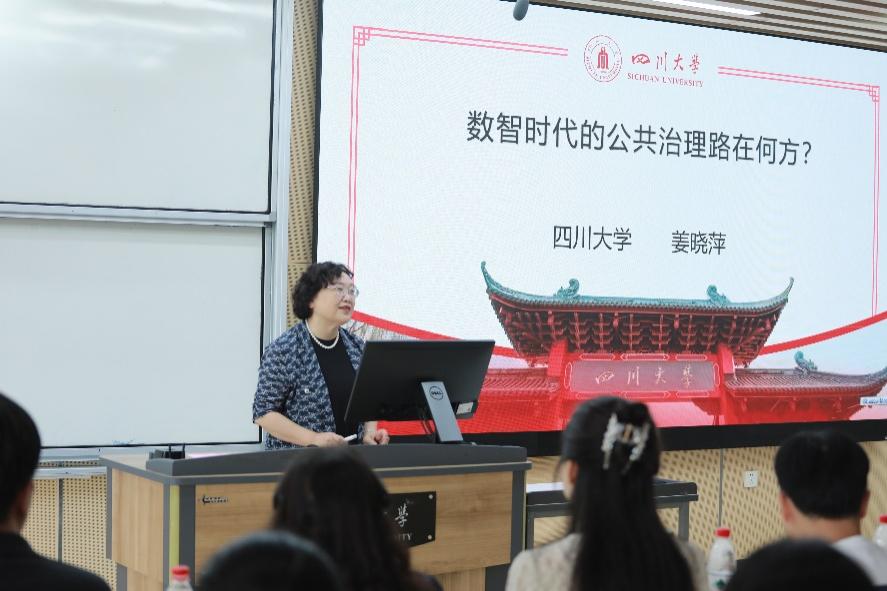 开学典礼结束后,教育部重要人才计划入选者、国家高端人才哲学社科领军人才姜晓萍教授为新生们带来了精彩的开学第一课——“数智时代的公共治理路在何方?”。姜老师用生动幽默的语言开场,以“DeepSeek赋能‘城市大脑’”为切入点,列举AI技术在多个日常场景中的应用,提出“人工智能+治理能力”是数智时代公共管理学科的数字化转型的关键。并从认知、解码、行动三个层面出发,回答“公共治理是什么?”、“公共治理何以有用?”、“公共治理如何学习?”三个基本问题,充分解读了公共管理学科的内涵,鼓励同学们认清时代使命、瞄准发展目标、树立成才理念,并祝愿同学们通过大学期间学习,成长为数智治理拔尖创新人才。